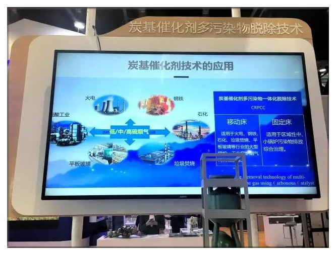 北京國能中電節(jié)能環(huán)保技術股份有限公司是國能中電集團旗下的控股子公司,主要從事節(jié)能環(huán)保業(yè)務。國能中電在展會中重點展示了一項新技術:炭基催化劑干法煙氣多種污染物一體化脫除技術。該技術是國能中電基于中國科學院的國家863課題超過20年的實驗室研究進行的工業(yè)成果轉化,并于今年上半年在濟南鋼鐵獲得工業(yè)級試驗成功。