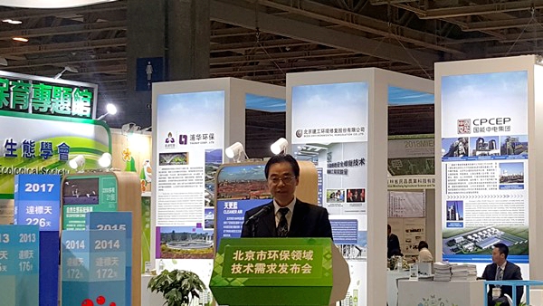 北京市政府副秘書長陳添在北京市環保領域技術需求發布會上講話